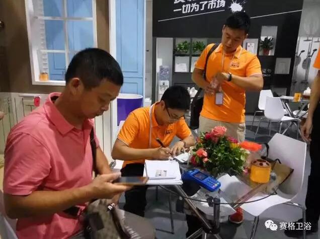 赛格卫浴广州建博会现场继第二天第三天的火爆之后,11日上午仍然有很多客户到展位签单。